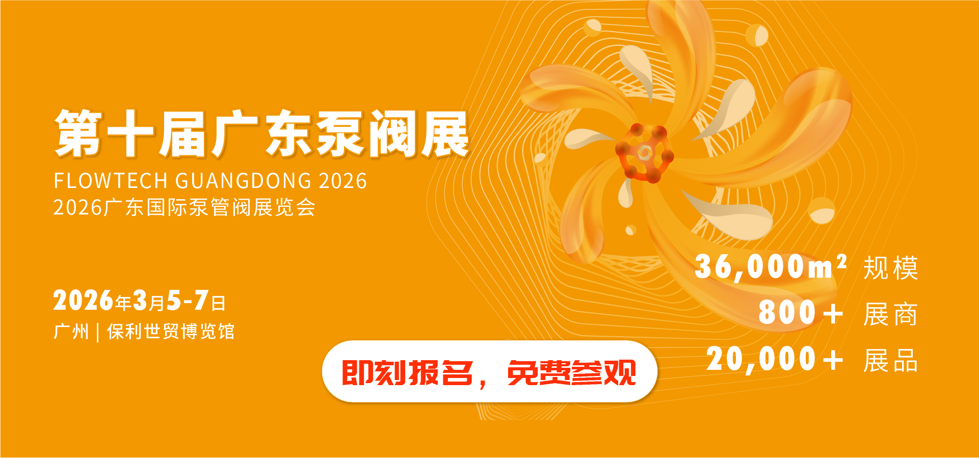 由上海荷瑞展覽有限公司、Informa Markets聯合主辦,上海荷祥會展有限公司協辦的第十屆廣東國際泵管閥展覽會(簡稱:廣東泵閥展)作為華南泵閥產業首選商貿平臺,攜手廣東水展將于2026年3月5-7日在廣州保利世貿博覽館再度啟幕!